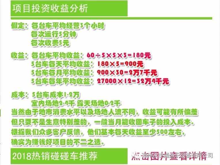 最近幾年,電動(dòng)碰碰車在各游樂場(chǎng)經(jīng)營火爆,深受廣大兒童和家長的喜愛,也受到了廣大小本創(chuàng)業(yè)經(jīng)營者的熱捧。經(jīng)營電動(dòng)碰碰車,想要擁有更多的人氣和客流量,源源不斷的賺取高額的收入,就必須要注重每一個(gè)細(xì)節(jié),今天和大家所說的兒童電瓶碰碰車產(chǎn)品它是怎樣讓我們這些小資本投入者盈利的,從以下幾個(gè)點(diǎn)去分析: